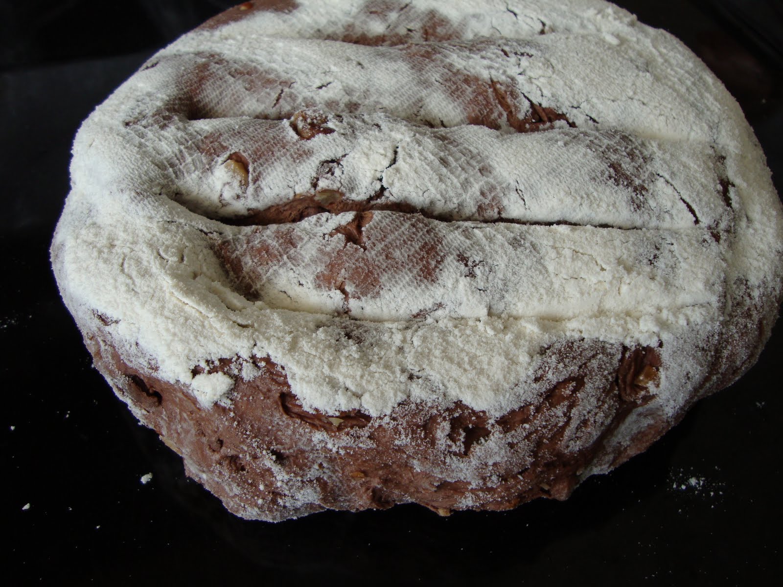 הלחם הזה שייך לז'אנר החדש של " הלחם הפראי" מבית היוצר של ג'ים לאהי מניו –יורק. הזכויות על הבאתו שמורות ל : לי פורת שלמדה אפייה בניו –יורק והתמחתה אצל ג'ים לאהי . כיום היא עובדת אצל עומר מילר ב"חדר אוכל". מגיע לה כל הקרדיט הזה ,כי היא הביאה לי את לחם השוקולד ישר הביתה….