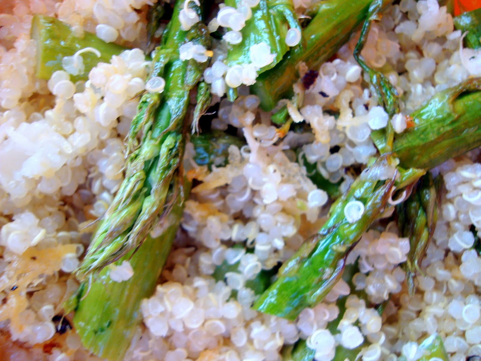 את הקינואה והאספרגוס עוטף רוטב לימוני , גבינת הפטה הקרה , מהווה ניגוד לחמימות של הקינואה והאספרגוס שנצלה בתנור .
