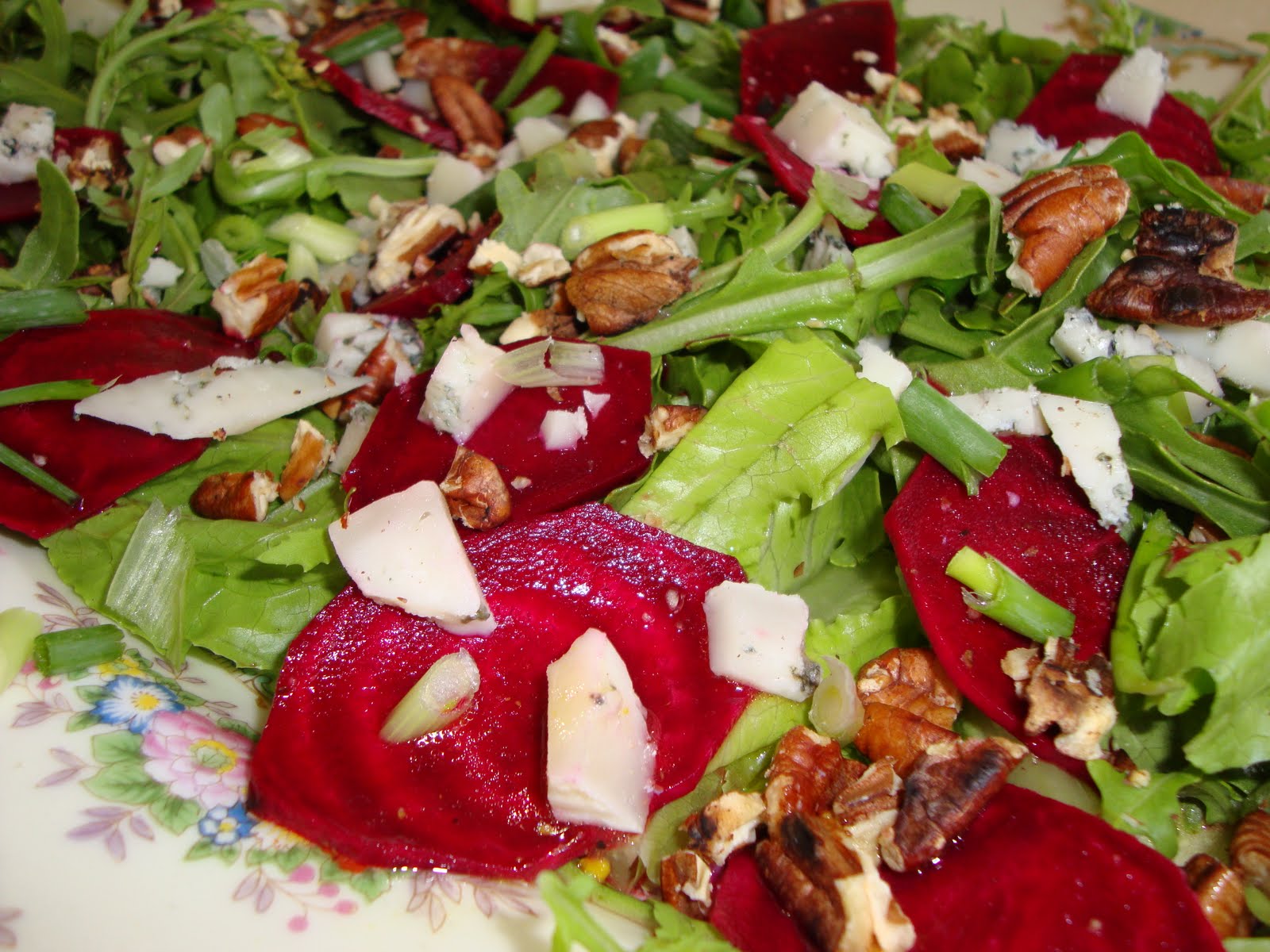 הסלט הוא שילוב של פרוסות דקיקות (קרפצ'יו) של סלק המושרה בתחמיץ מתוק – חריף עם וסאבי , על מצע של חסה משי ואנדיב ,גבינה כחולה ואגוזים קלויים משלימים את הטעמים לכדי שלמות אחת גדולה.